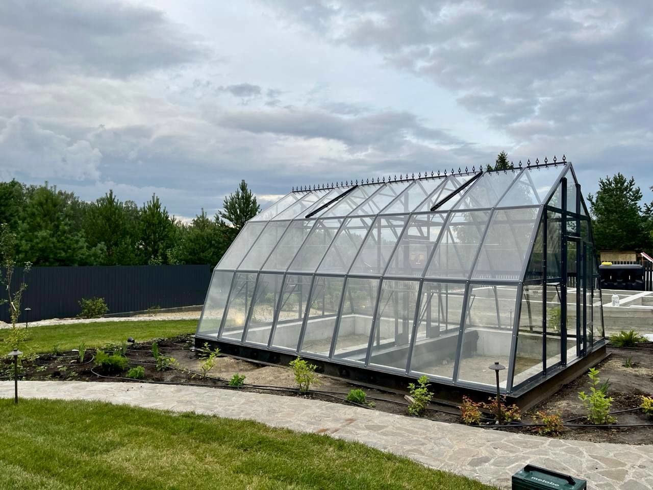 Мансардная теплица в дизайнерском стиле с панорамным остеклением и уникальной архитектурой. Это дизайнерская модель для тех, кто хочет создать на участке мини-оранжерею с продуманным внешним видом и ощущением премиальности.